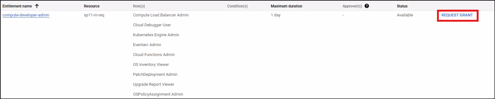 This section walks you through the process of requesting and granting access via the Privileged Access Manager (PAM) console in Google Cloud Platform.