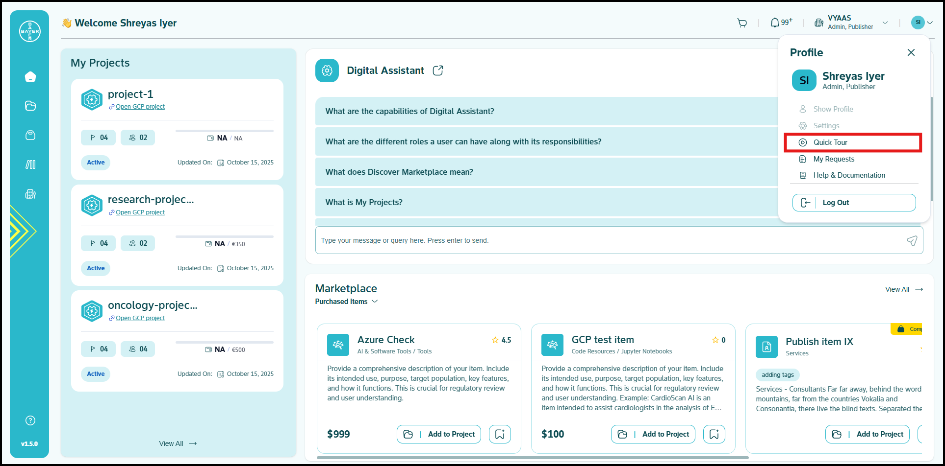 Note The Quick Tour is currently available only for the main sections to maintain a clean and consistent experience. For more detailed guidance, you can always reach out to your Digital Assistant chat buddy for help.