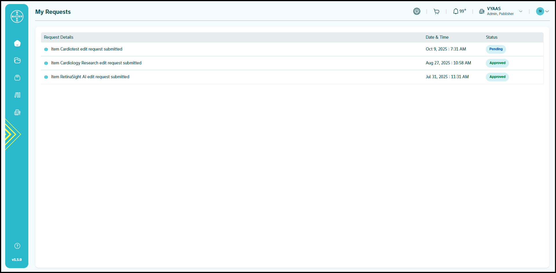 My requests: You can find all your requests here related to projects, user addition, etc along with their date & time when it was raised and the latest status.