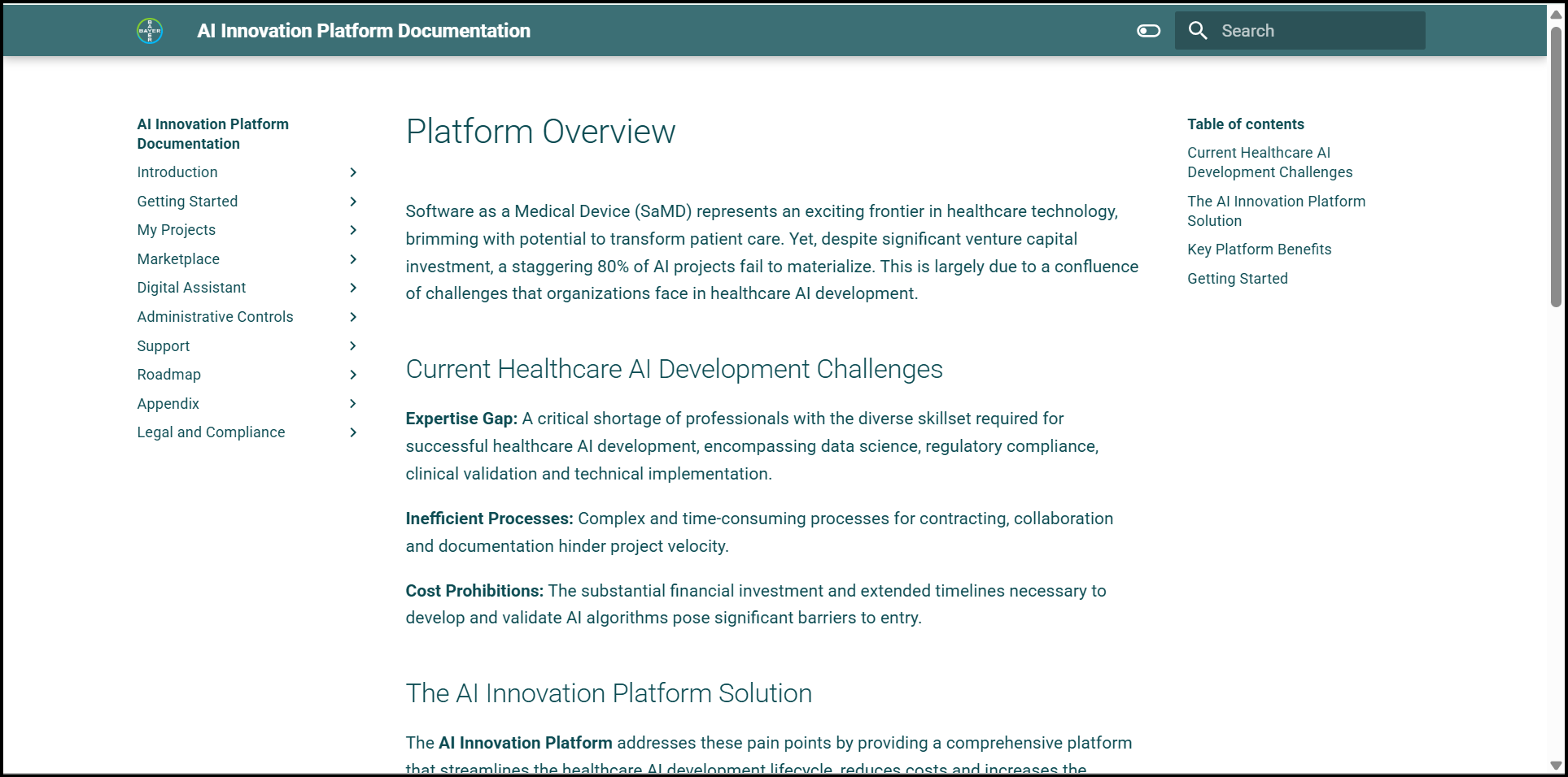 Welcome to the AI Innovation Platform! Upon successful login, you will arrive at your landing screen, which serves as your central interface for accessing and managing all platform activities. This page is designed to provide you with a quick overview and easy navigation to the platform's core features and information.