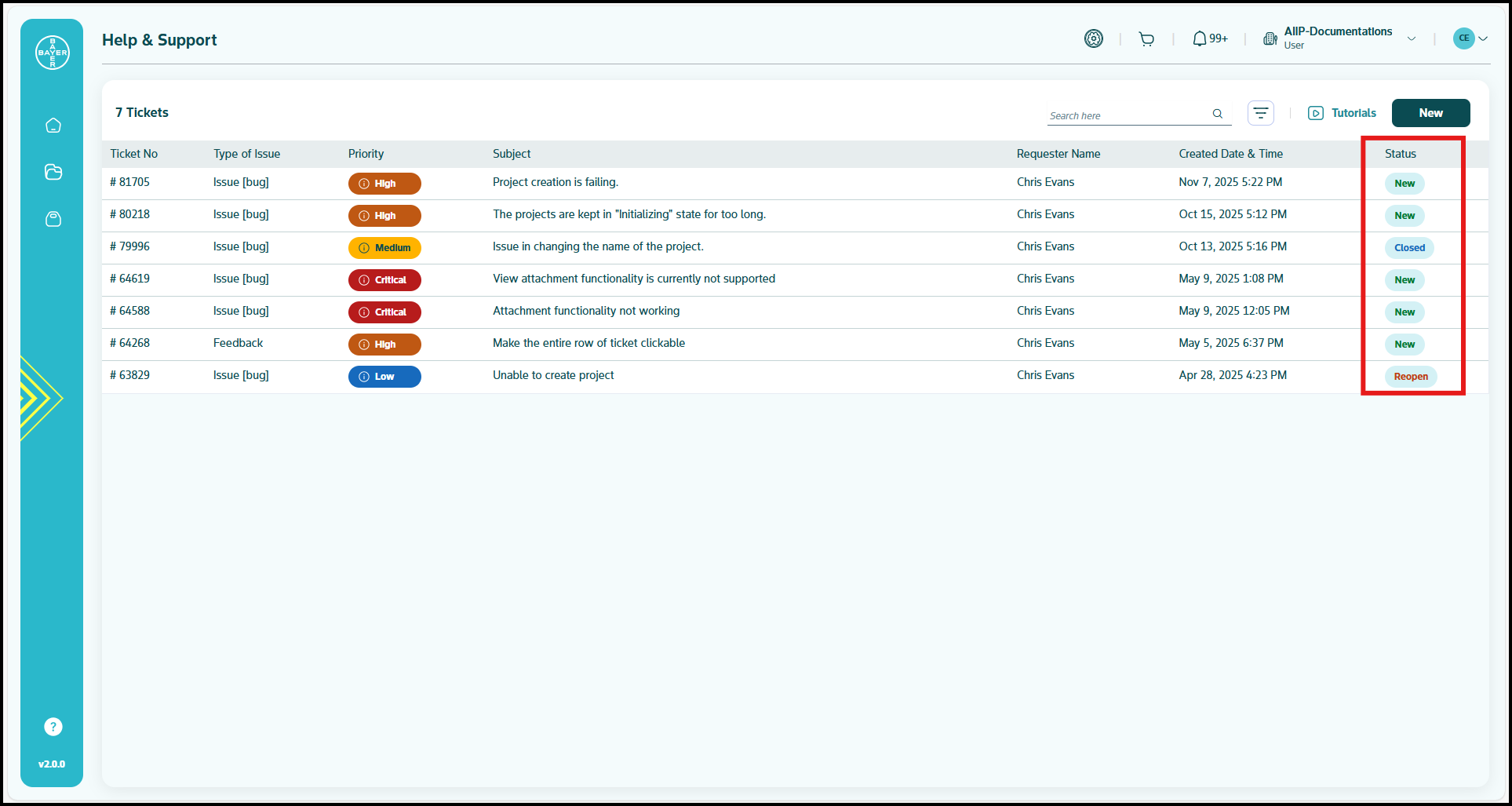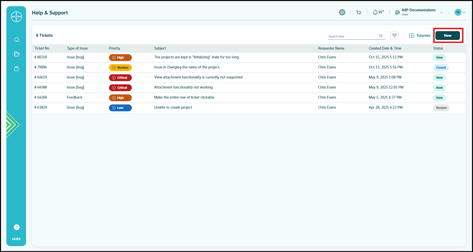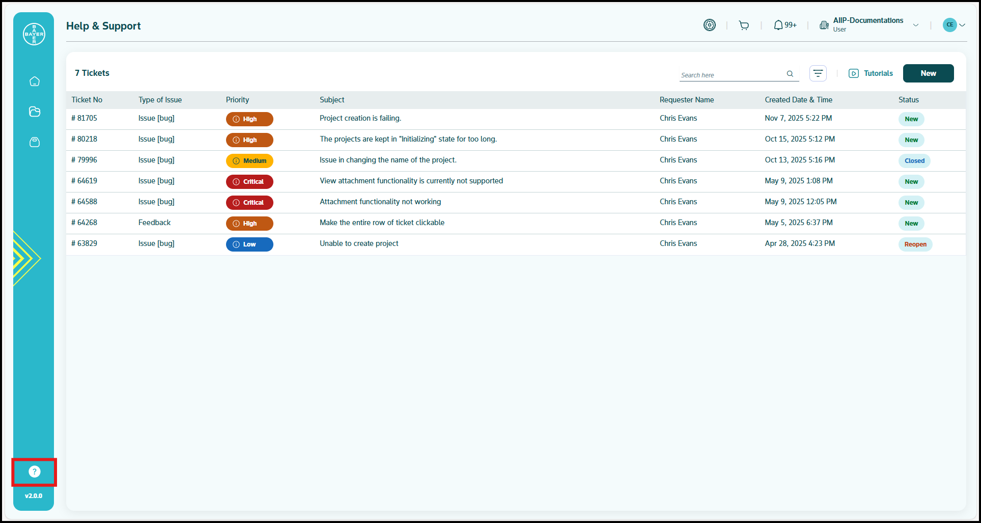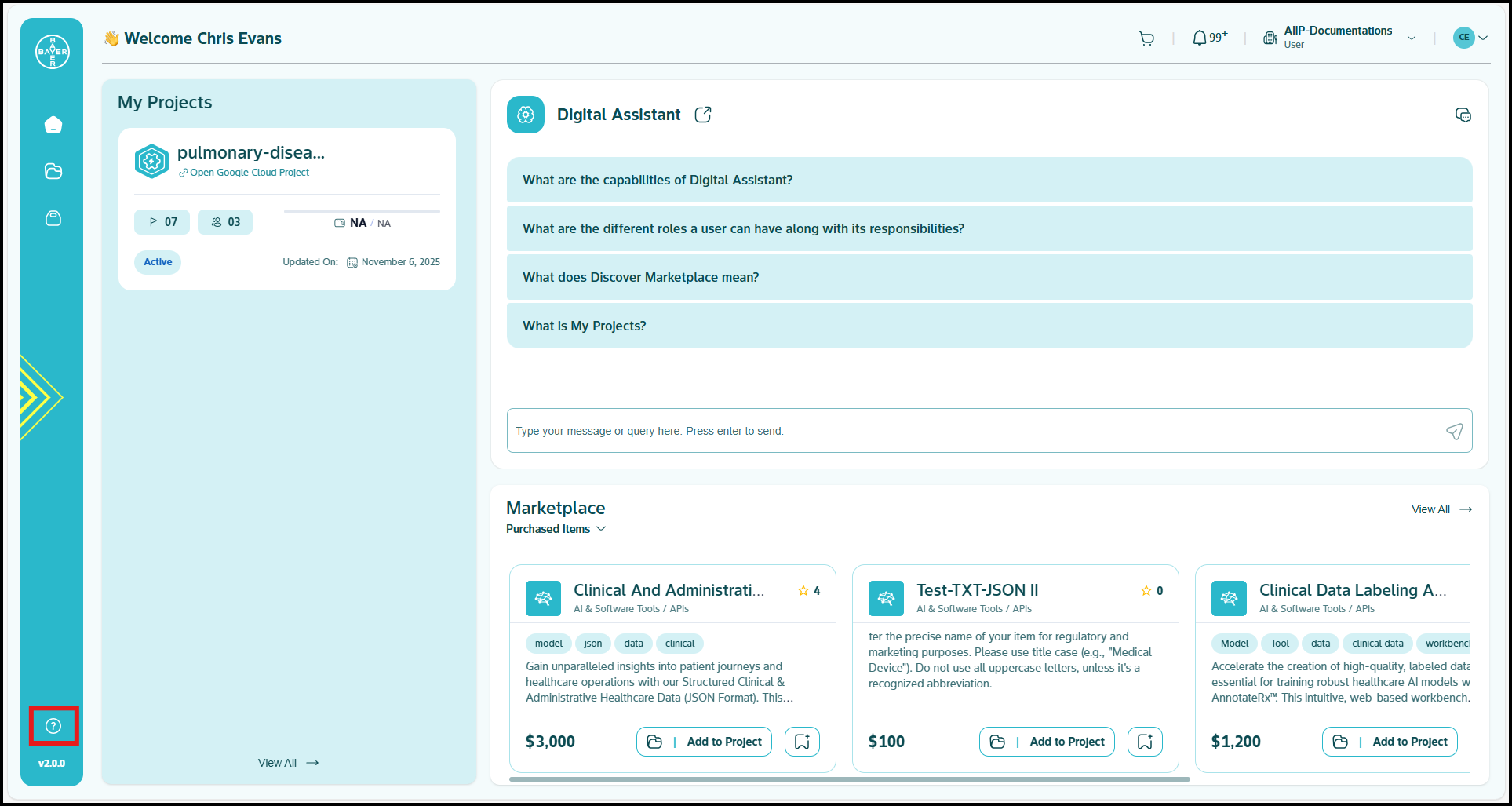 - Click on the Help & Support icon available in the AI Innovation Platform left panel.