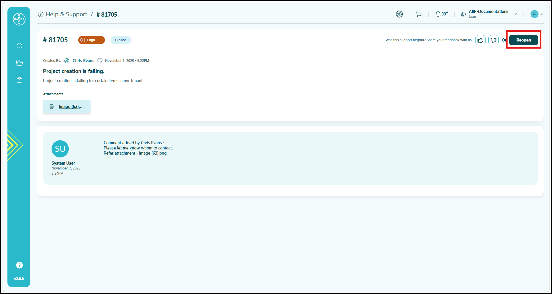 - You can reopen a closed ticket if needed.