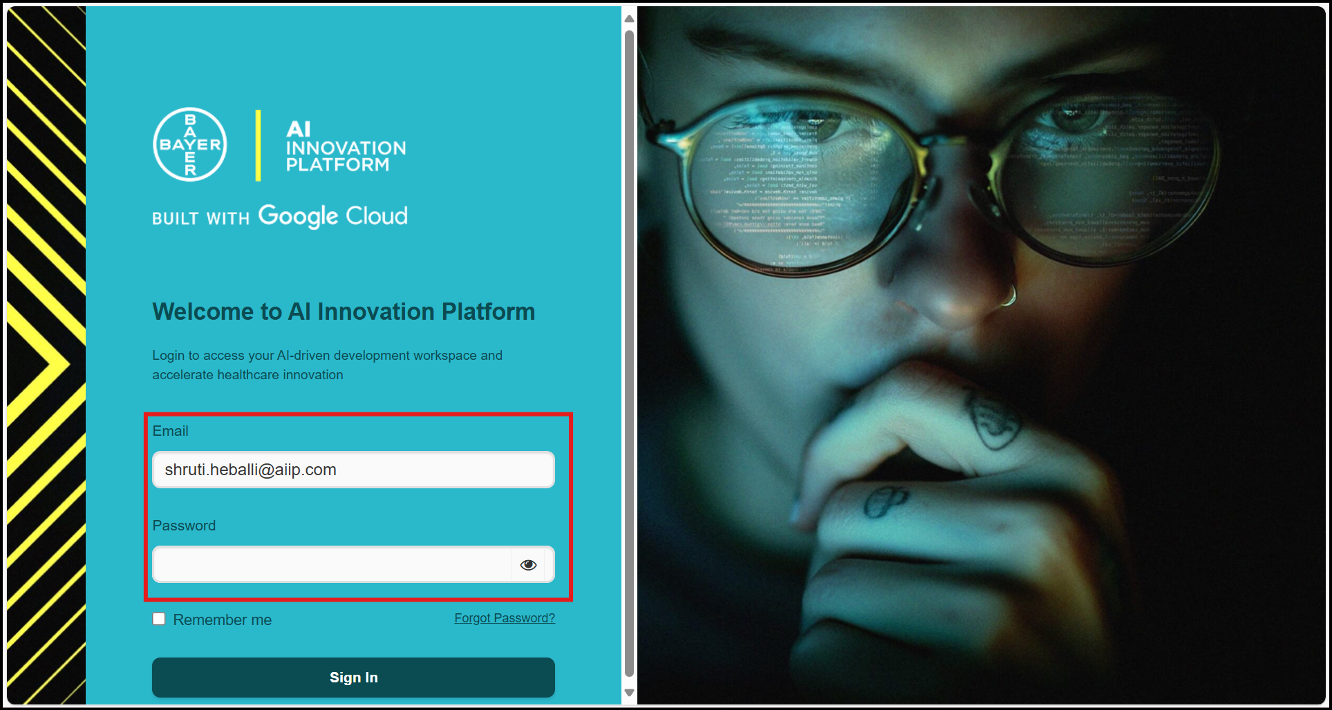 Navigate to the Login Page - Go to the AI Innovation Platform website ⧉.