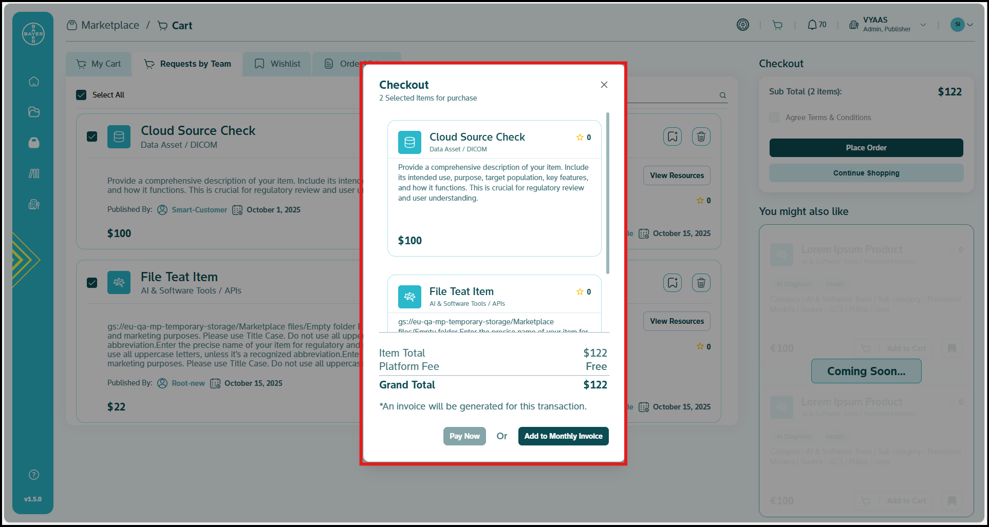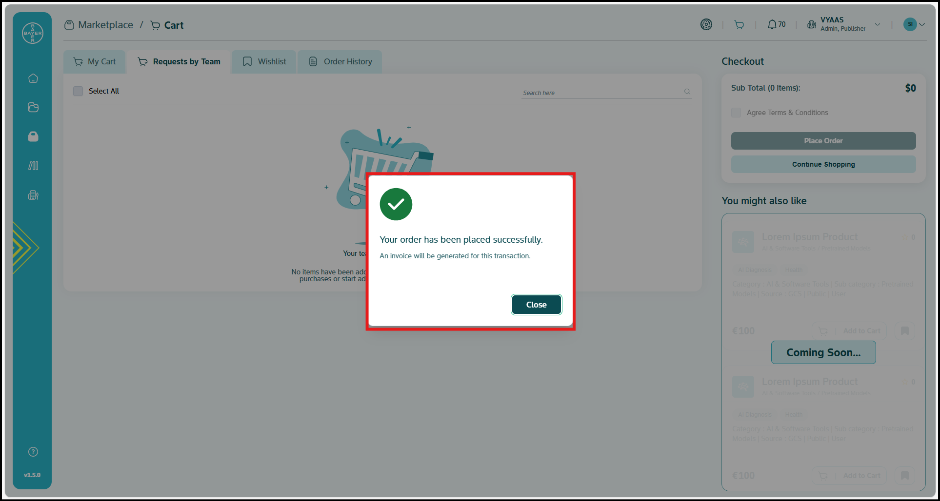 A popup will appear, displaying all selected items and their details. You can review the information and click "Confirm Order" to approve the request.