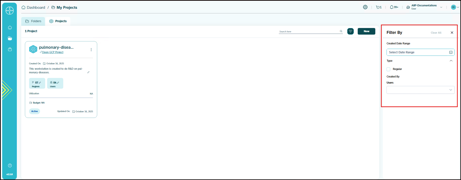 Use the date range filter to review projects from specific sprints or development cycles, and combine it with the "Created By" filter to track individual or team contributions over time.