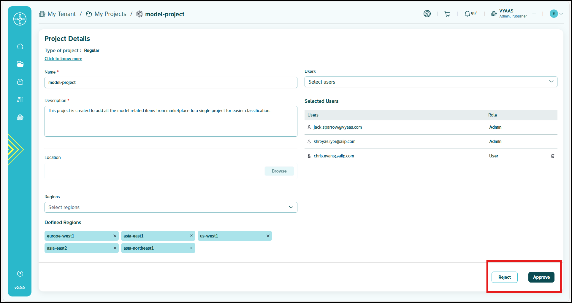 Approve or Reject a Project/User Addition Request