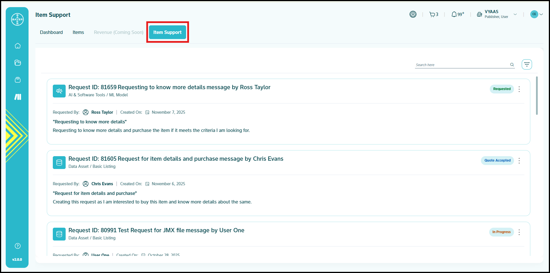 Item Support: This feature will function as a customer service tool, enabling you to track and communicate directly with customers regarding your published items, thereby facilitating support and addressing inquiries.