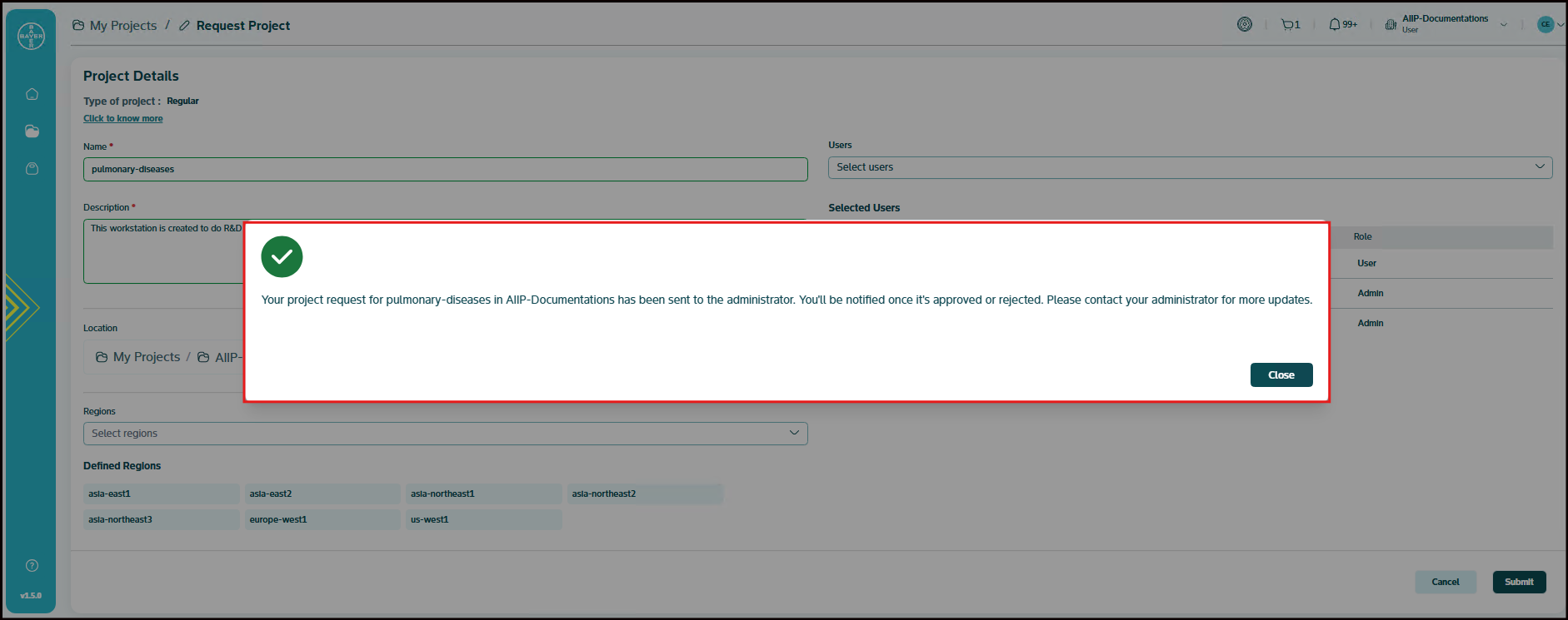 Await Admin Approval: Once you submit your request, it will go to the admin for review. You will receive a notification once your project is approved or rejected by the admin.