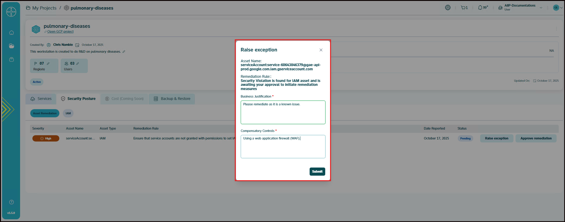 If a security finding doesn't need to be remediated, follow the below steps to raise an exception: