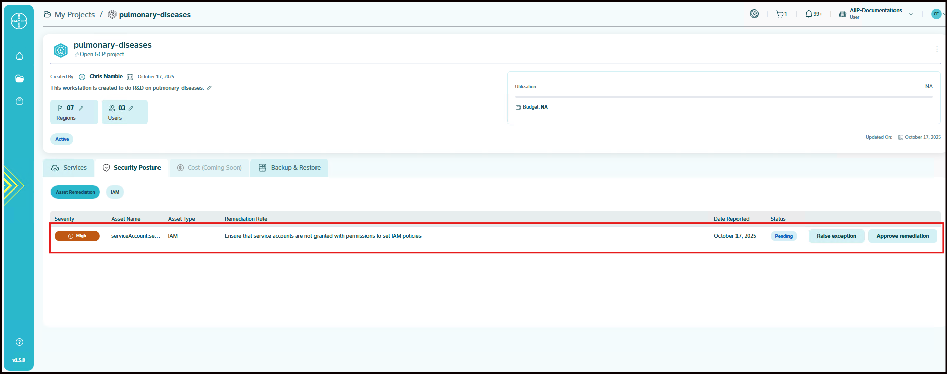 The Security Posture feature allows you to address security findings through automated remediation and exception handling. Depending on your role, you can take different actions to manage security issues in your projects.