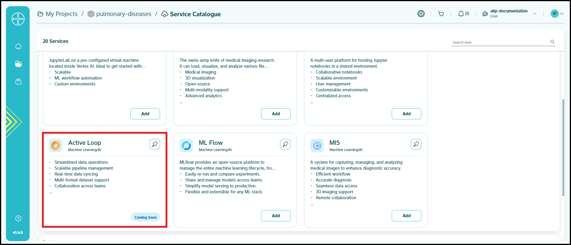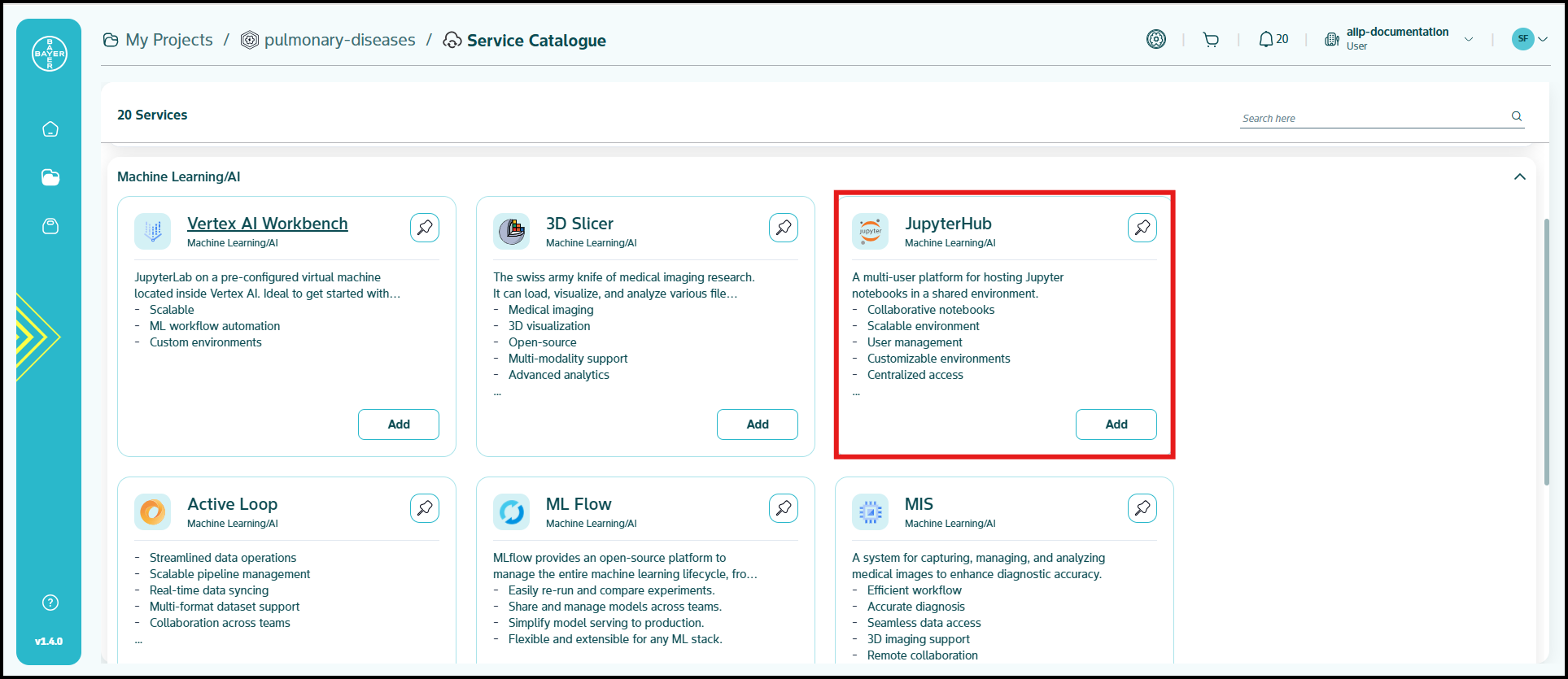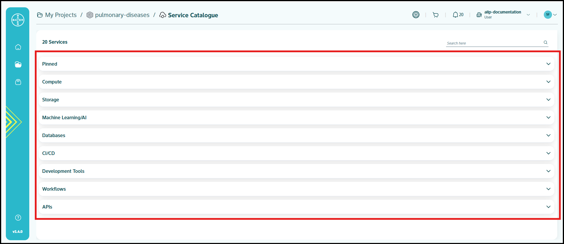 To improve accessibility and streamline your workflows, the platform offers to pin your favorite services to the top of the service catalogue page.