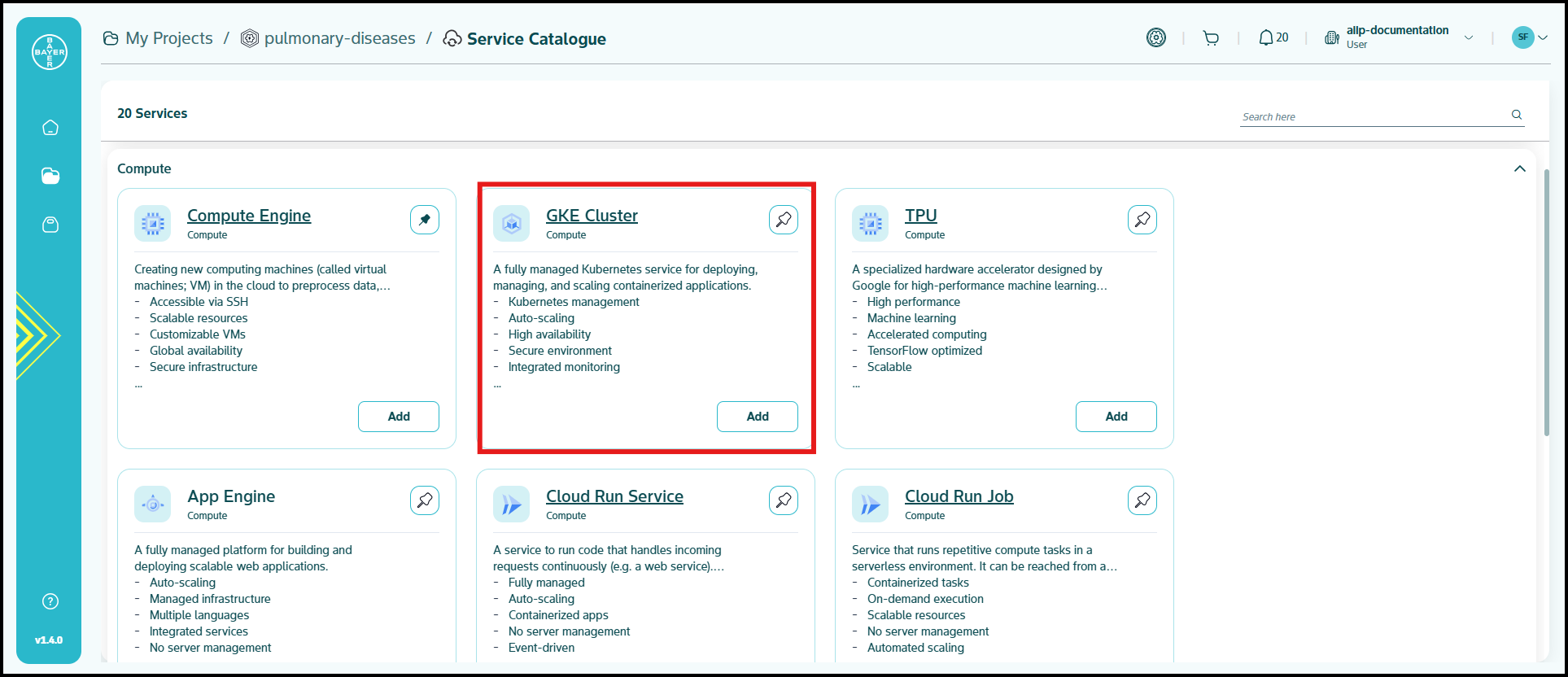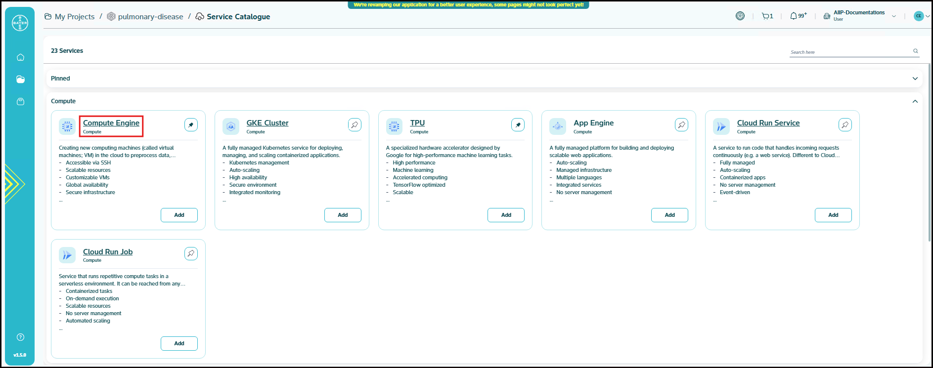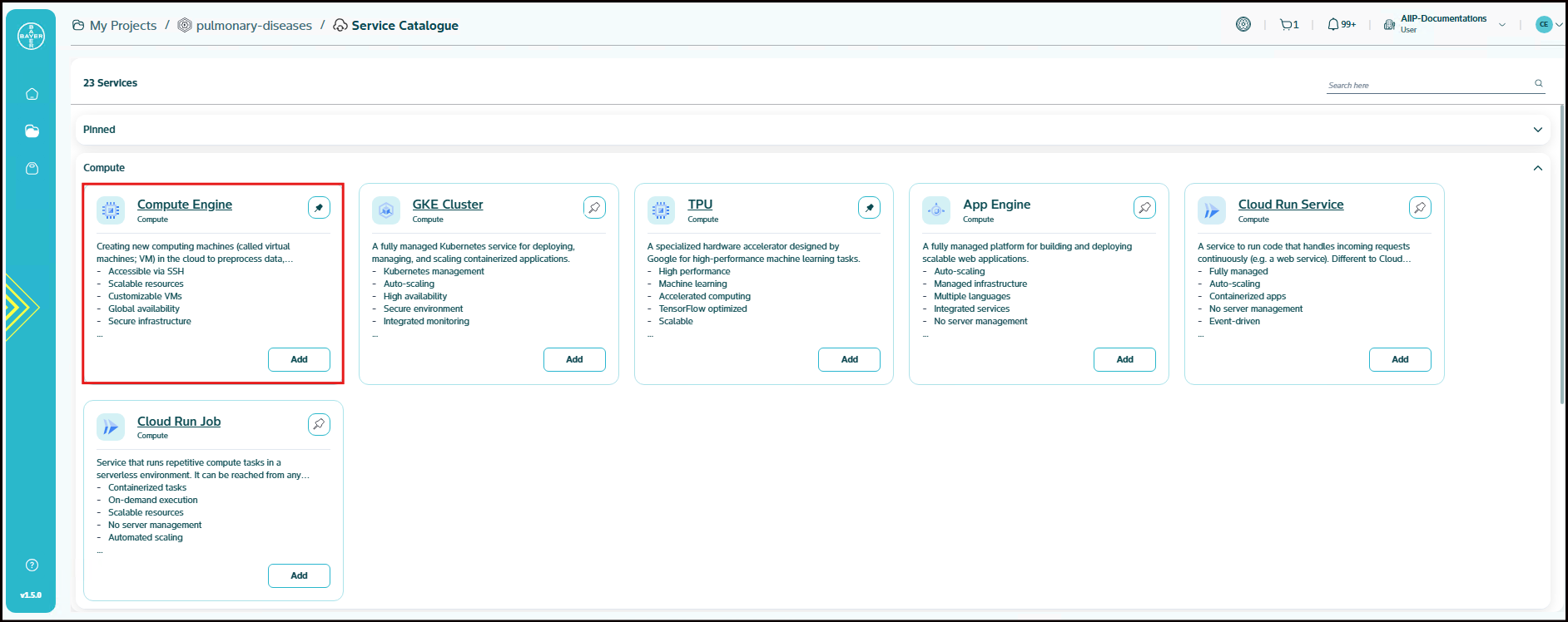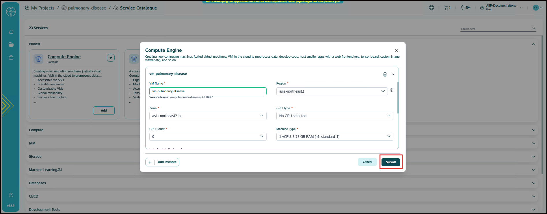 To ease the process of Google Cloud Platform resources setup for users, we have service catalogues available on our AI Innovation Platform where users can easily add Google Cloud Platform services to their projects/workspaces from the platform.