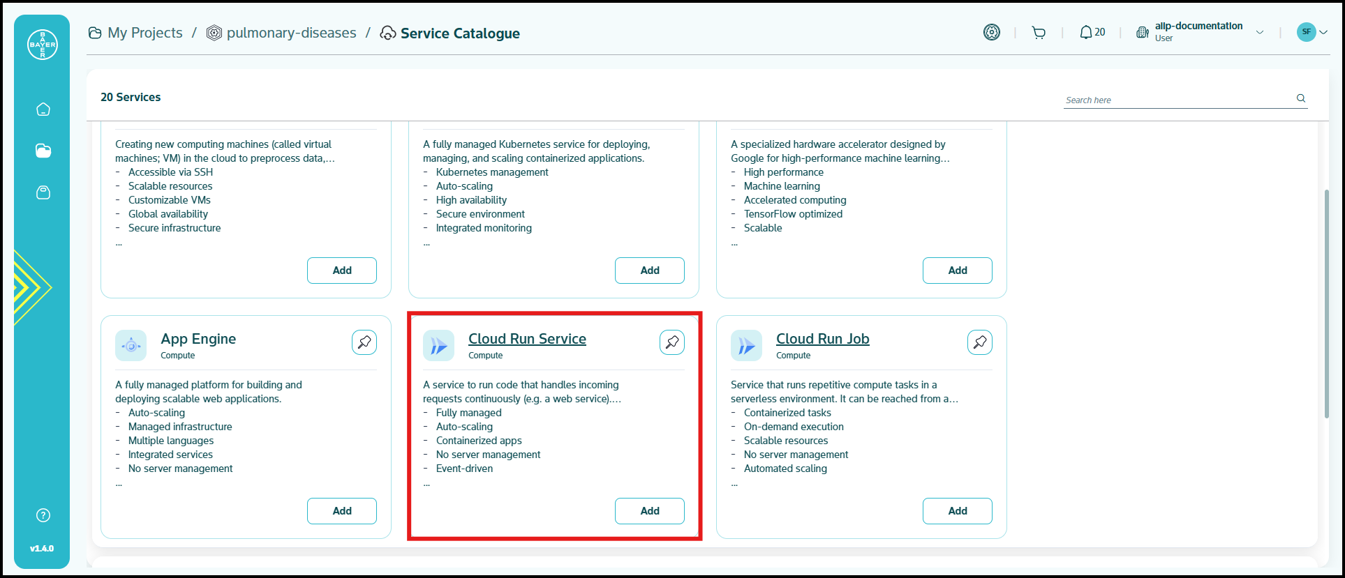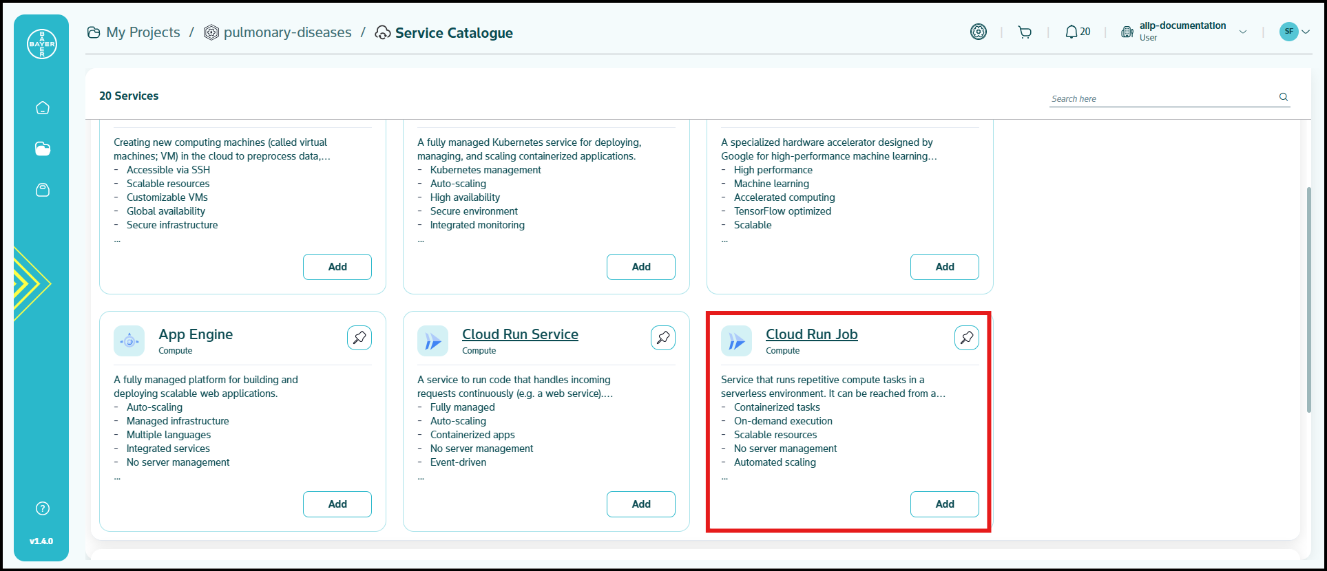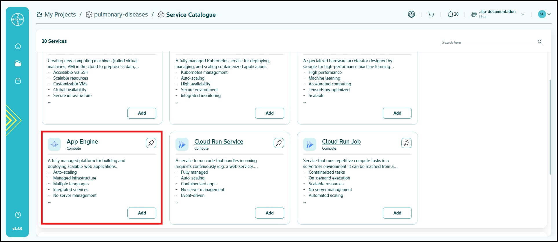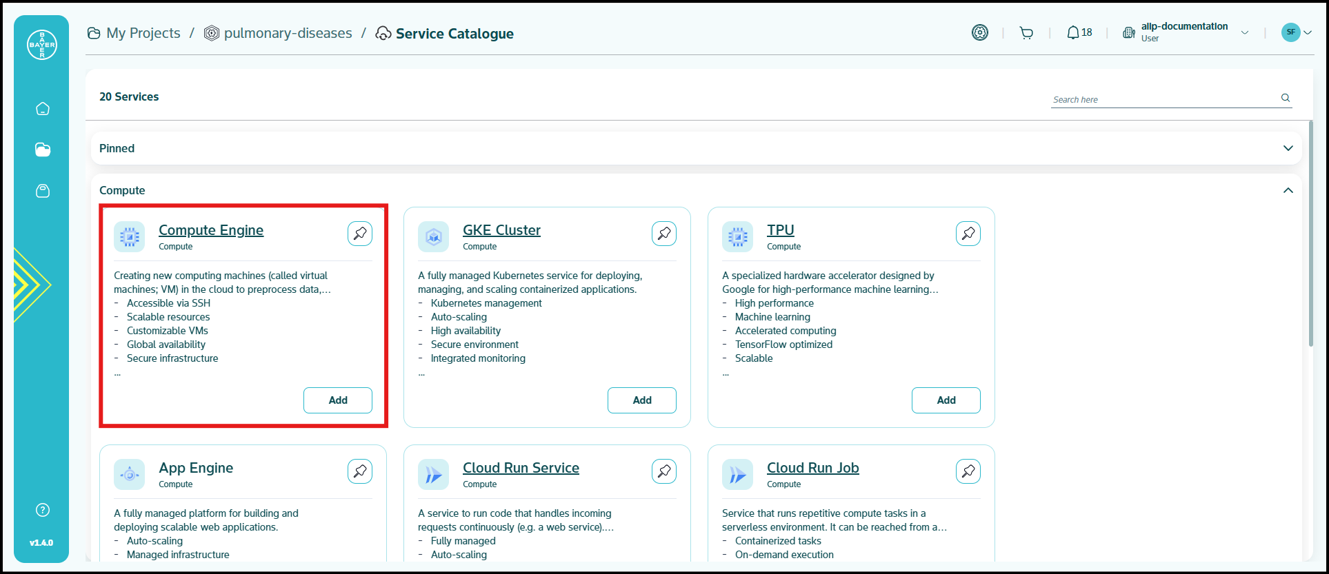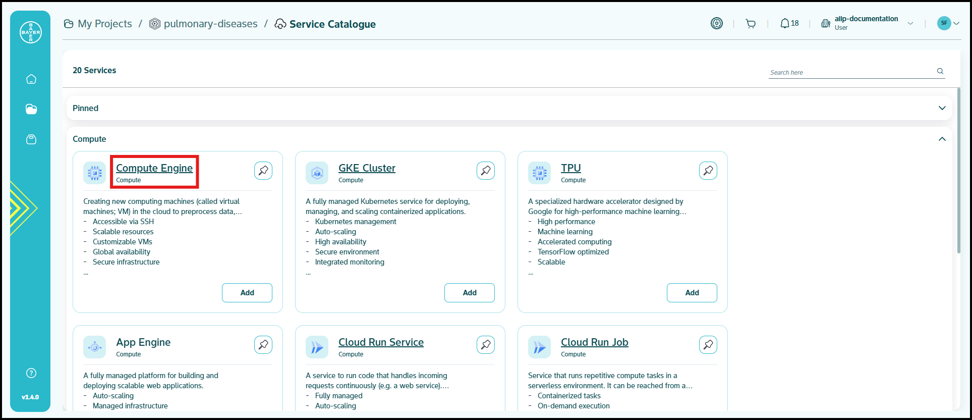 To ease the process of Google Cloud Platform resources setup for users, we have service catalogues available on our AI Innovation Platform where users can easily add Google Cloud Platform services to their projects/workspaces from the platform.