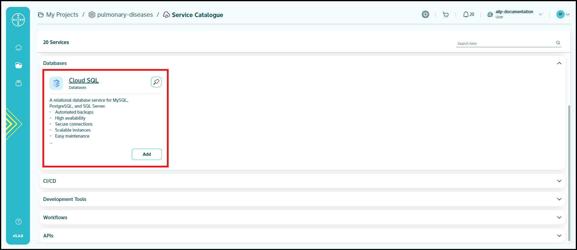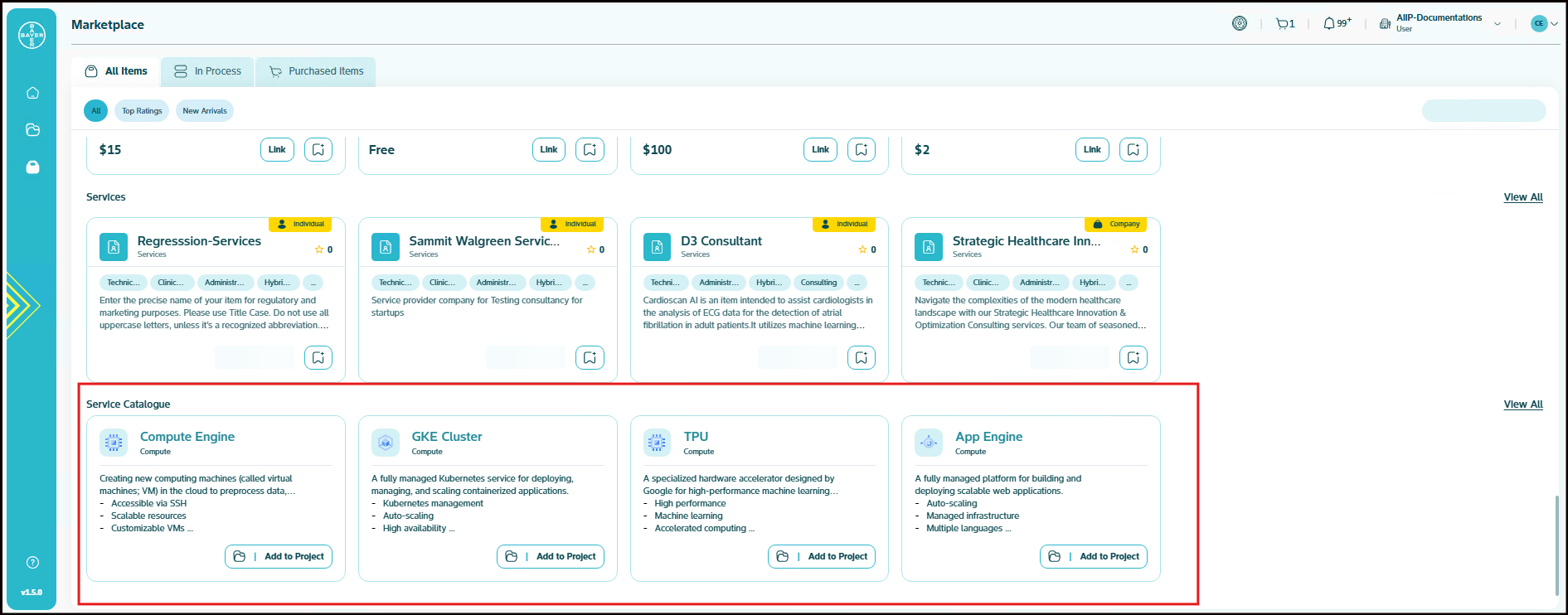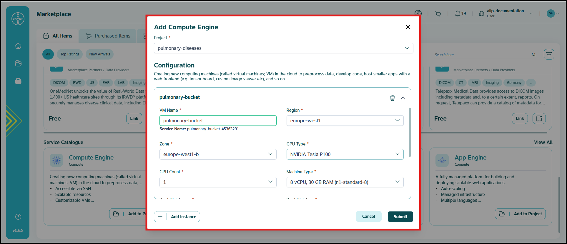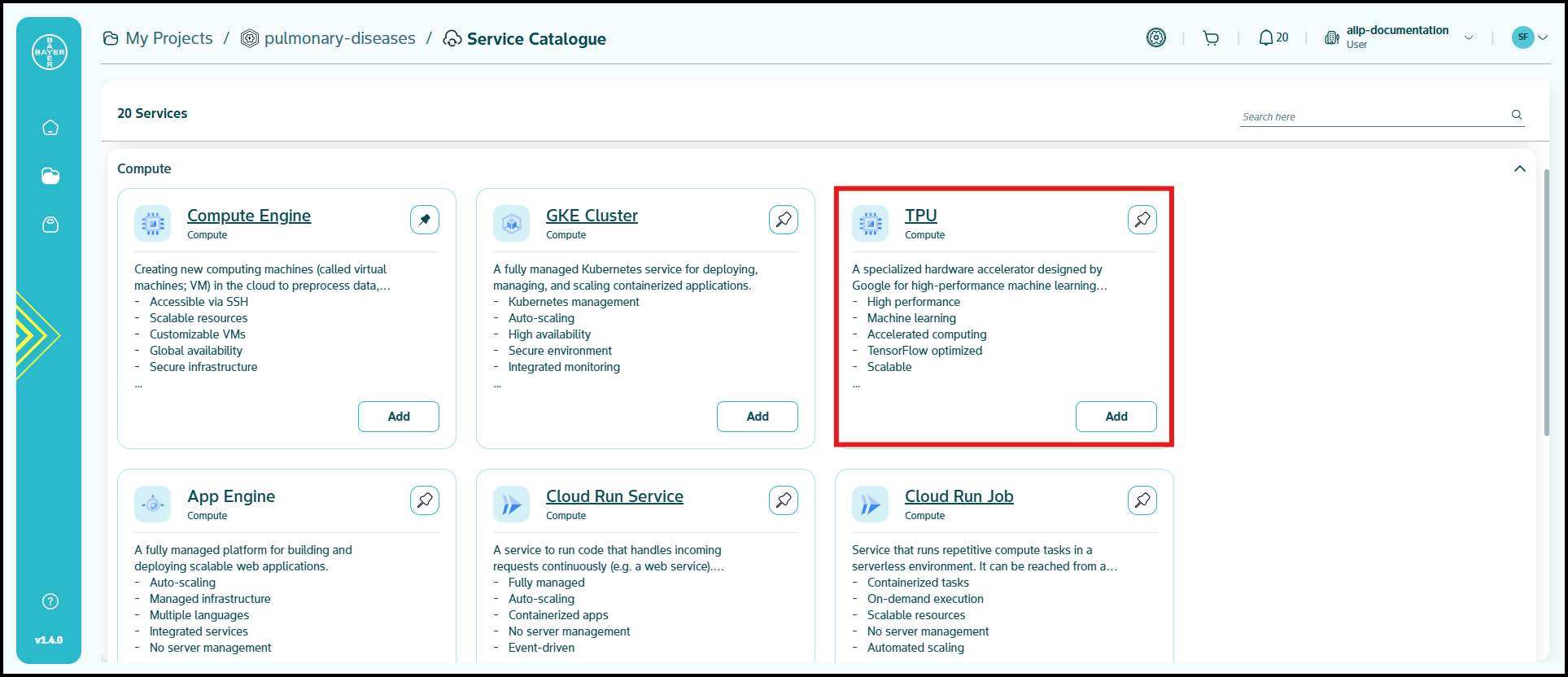 To ease the process of Google Cloud Platform resources setup for users, we have service catalogues available on our AI Innovation Platform where users can easily add Google Cloud Platform services to their projects/workspaces from the platform.