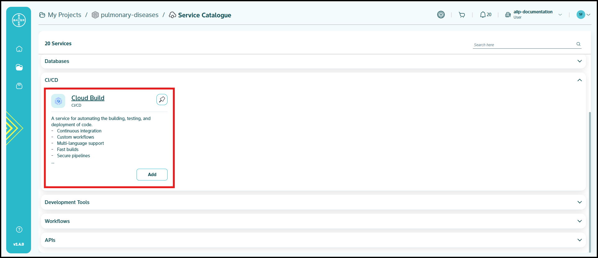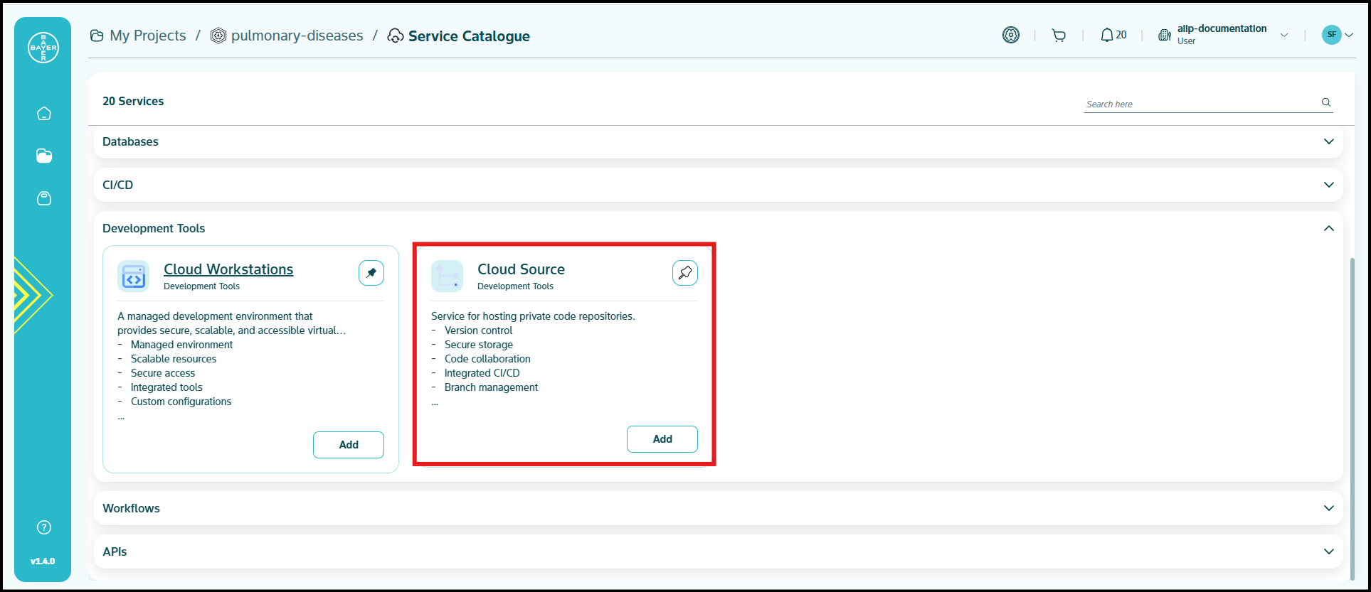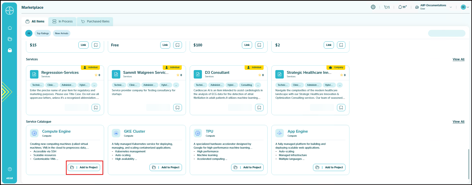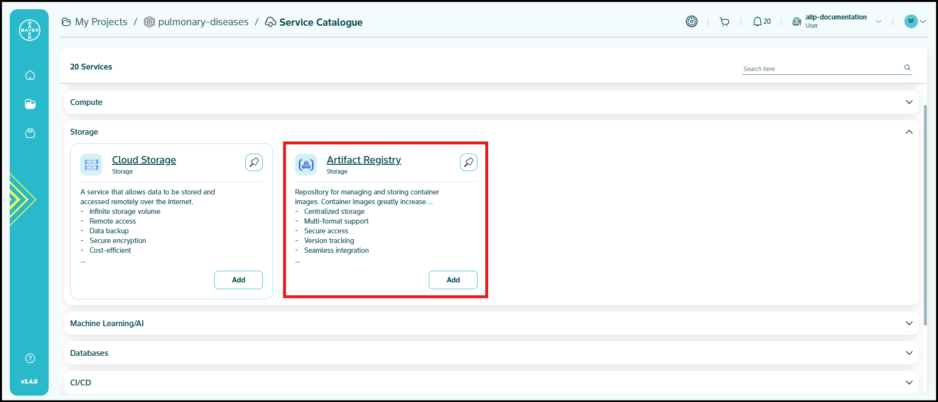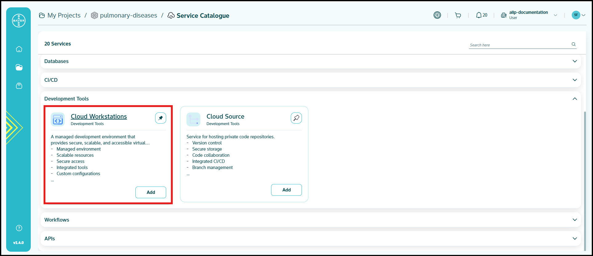 To ease the process of Google Cloud Platform resources setup for users, we have service catalogues available on our AI Innovation Platform where users can easily add Google Cloud Platform services to their projects/workspaces from the platform.