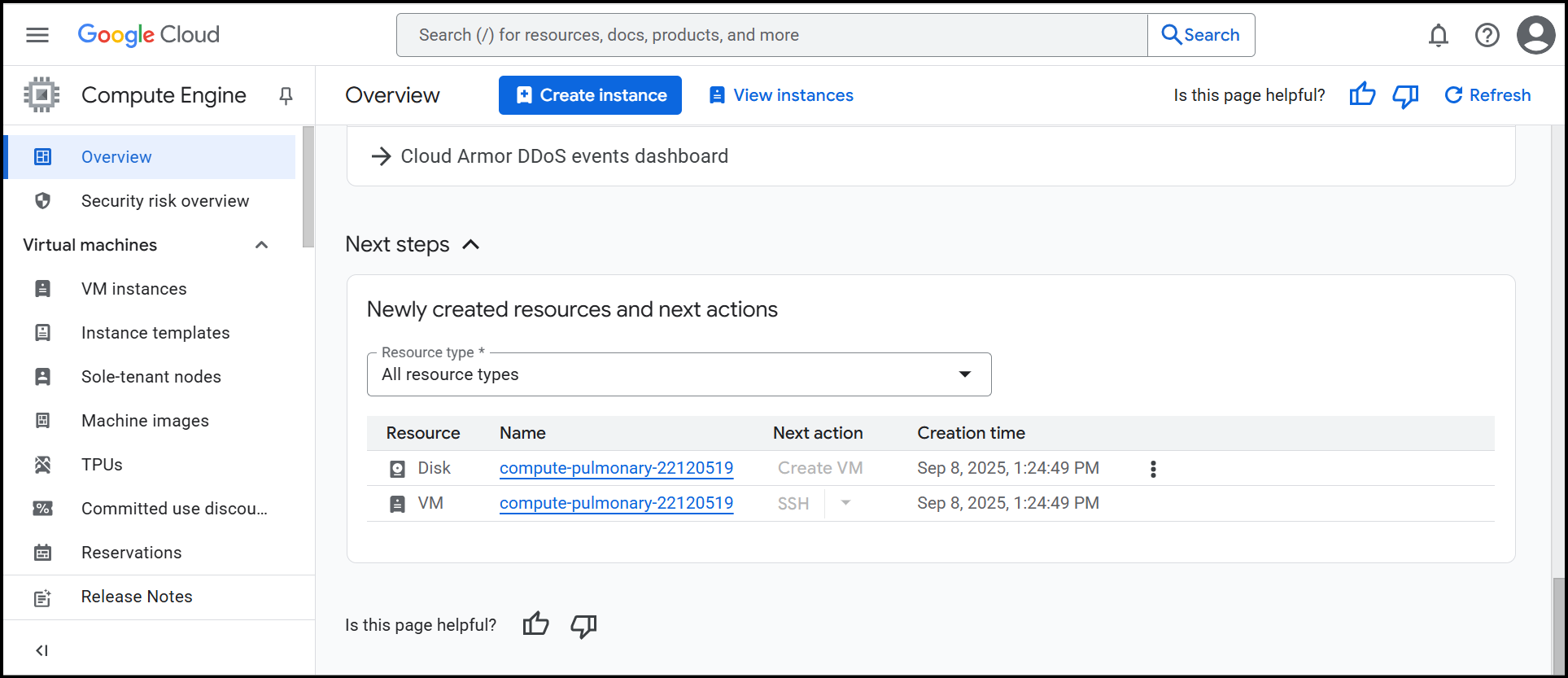Once provisioned, a link of the service will be available on the service name itself as a hyperlink. You can click on this and navigate to the Google Cloud Platform console to see this service.