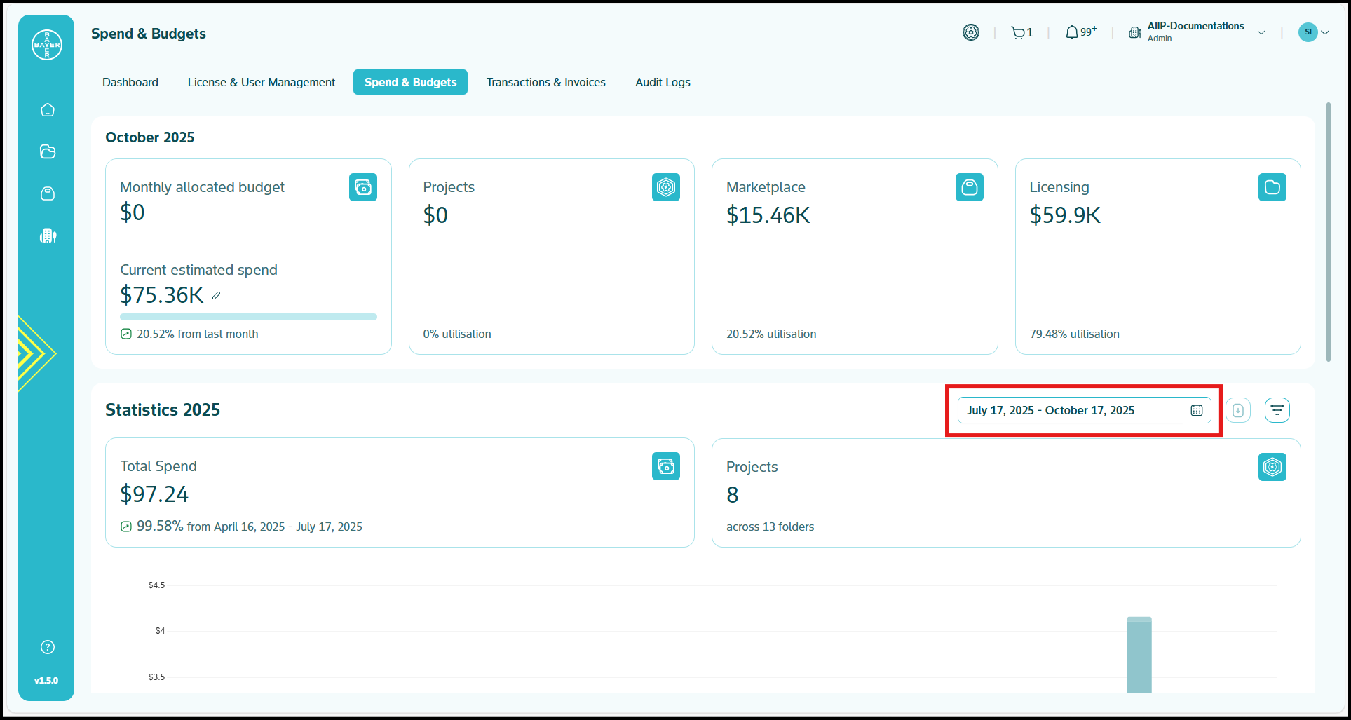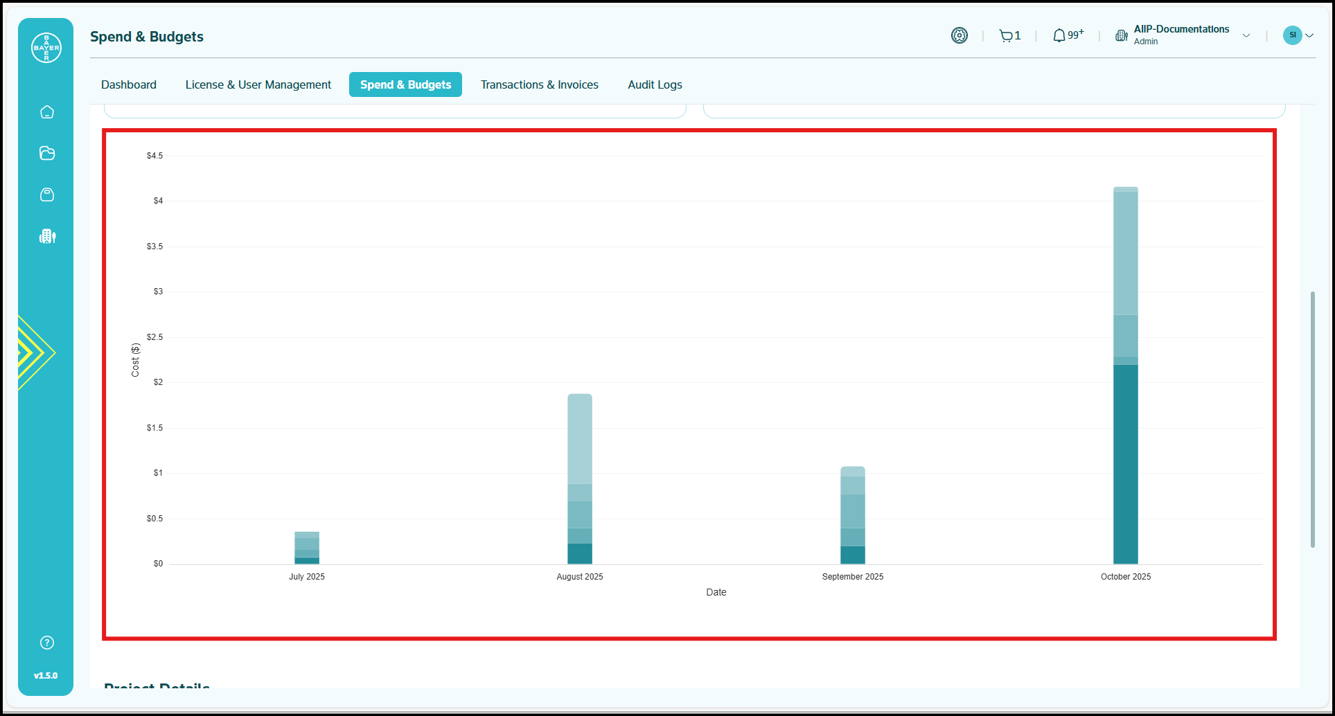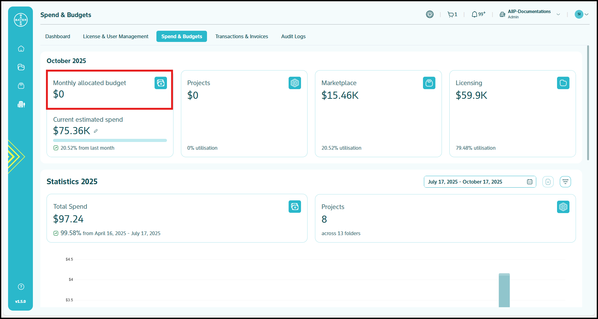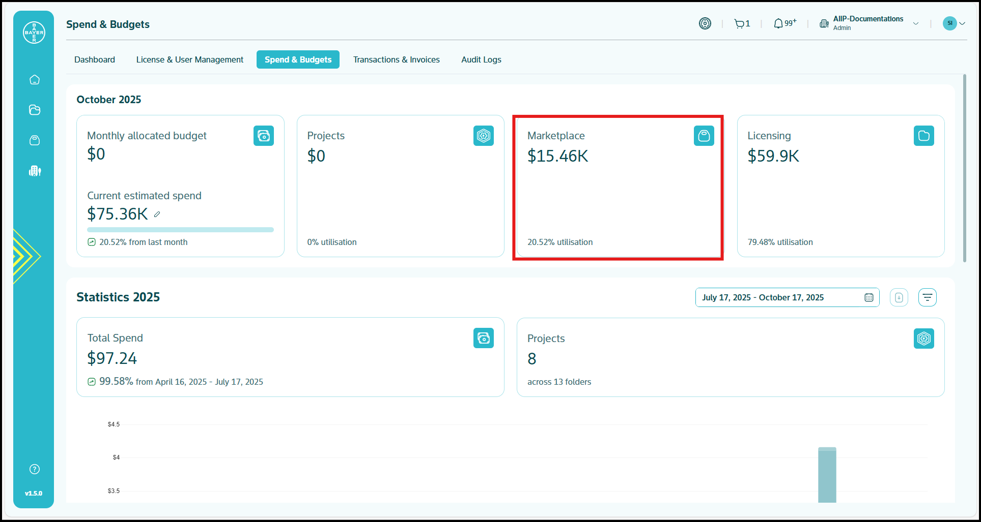 The Spend & Budgets section provides comprehensive financial oversight of your tenant's resource consumption across all platform services. This powerful Dashboard offers real-time visibility into your spending patterns, budget utilization, and resource allocation, enabling you to make informed decisions about your cloud investments.