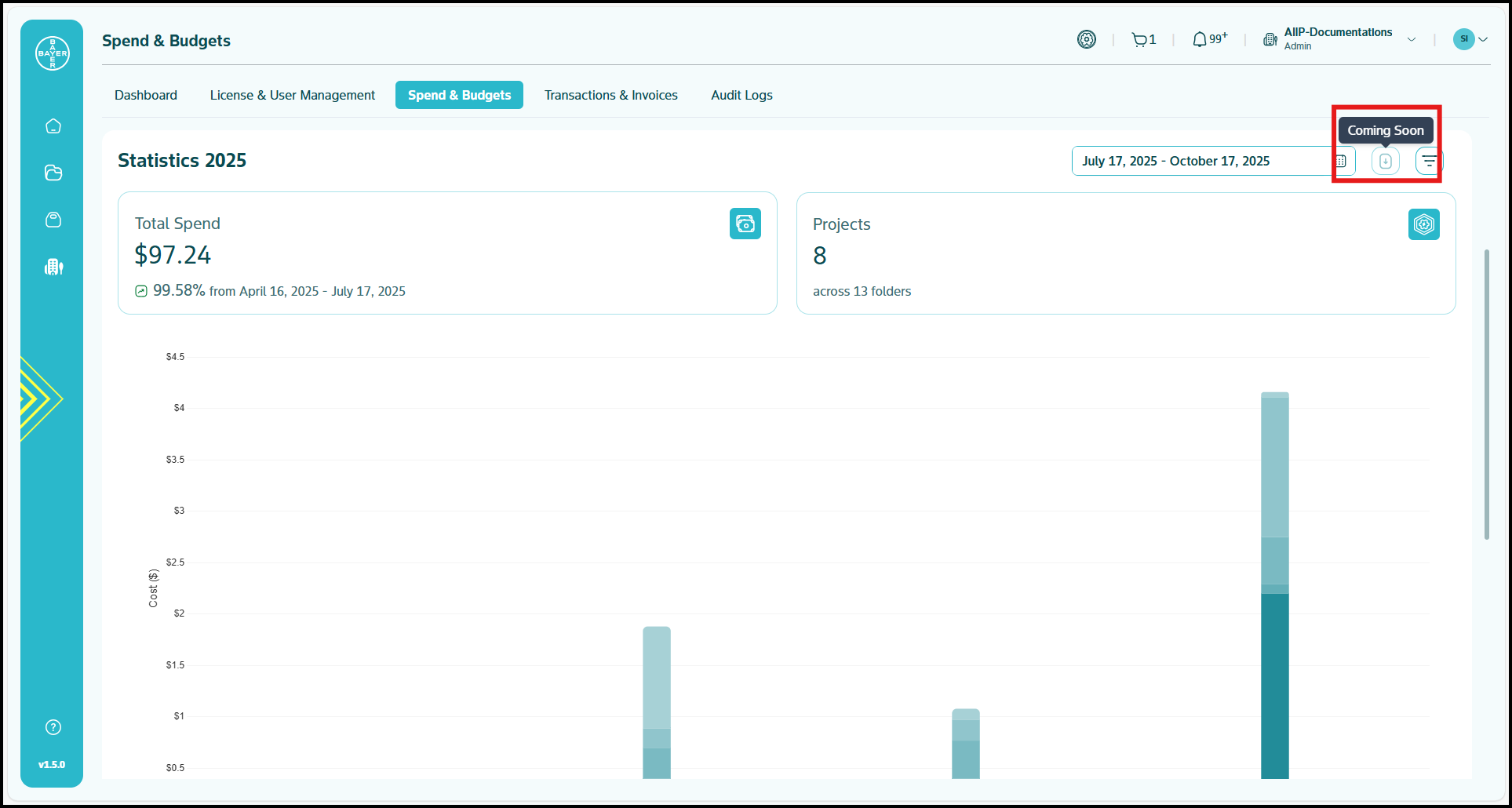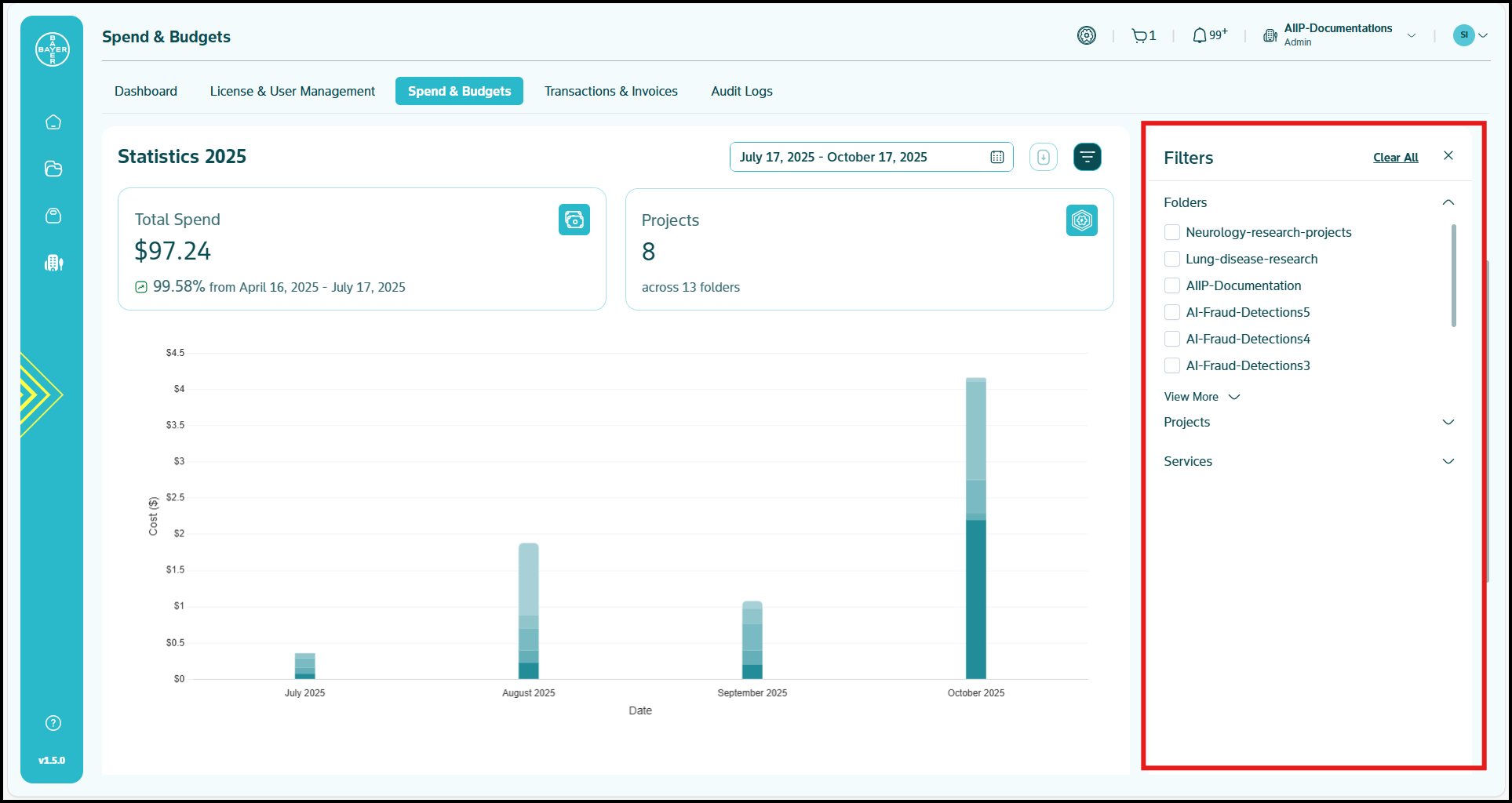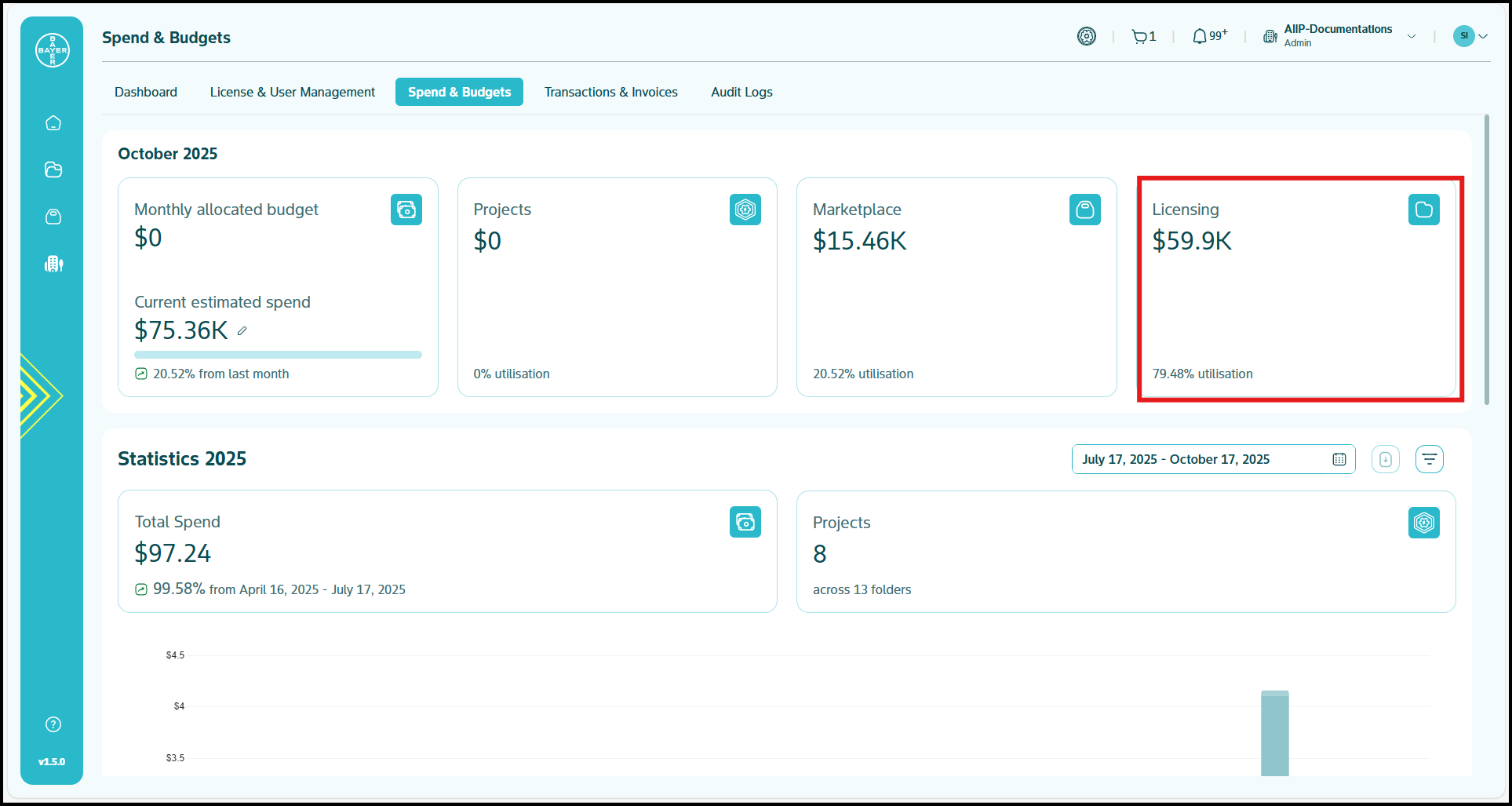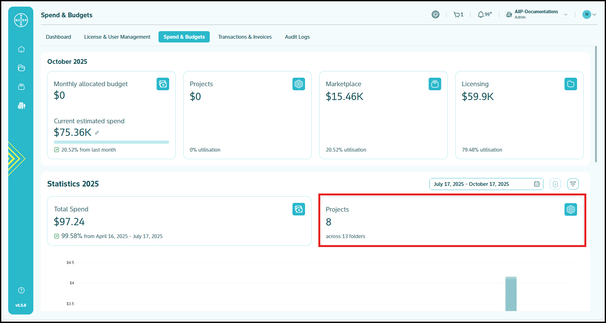 The Spend & Budgets section provides comprehensive financial oversight of your tenant's resource consumption across all platform services. This powerful Dashboard offers real-time visibility into your spending patterns, budget utilization, and resource allocation, enabling you to make informed decisions about your cloud investments.