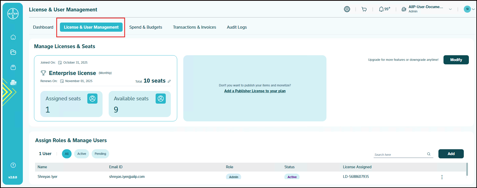 - Downgrades: If you downgrade the license, the changes will take effect the following month.