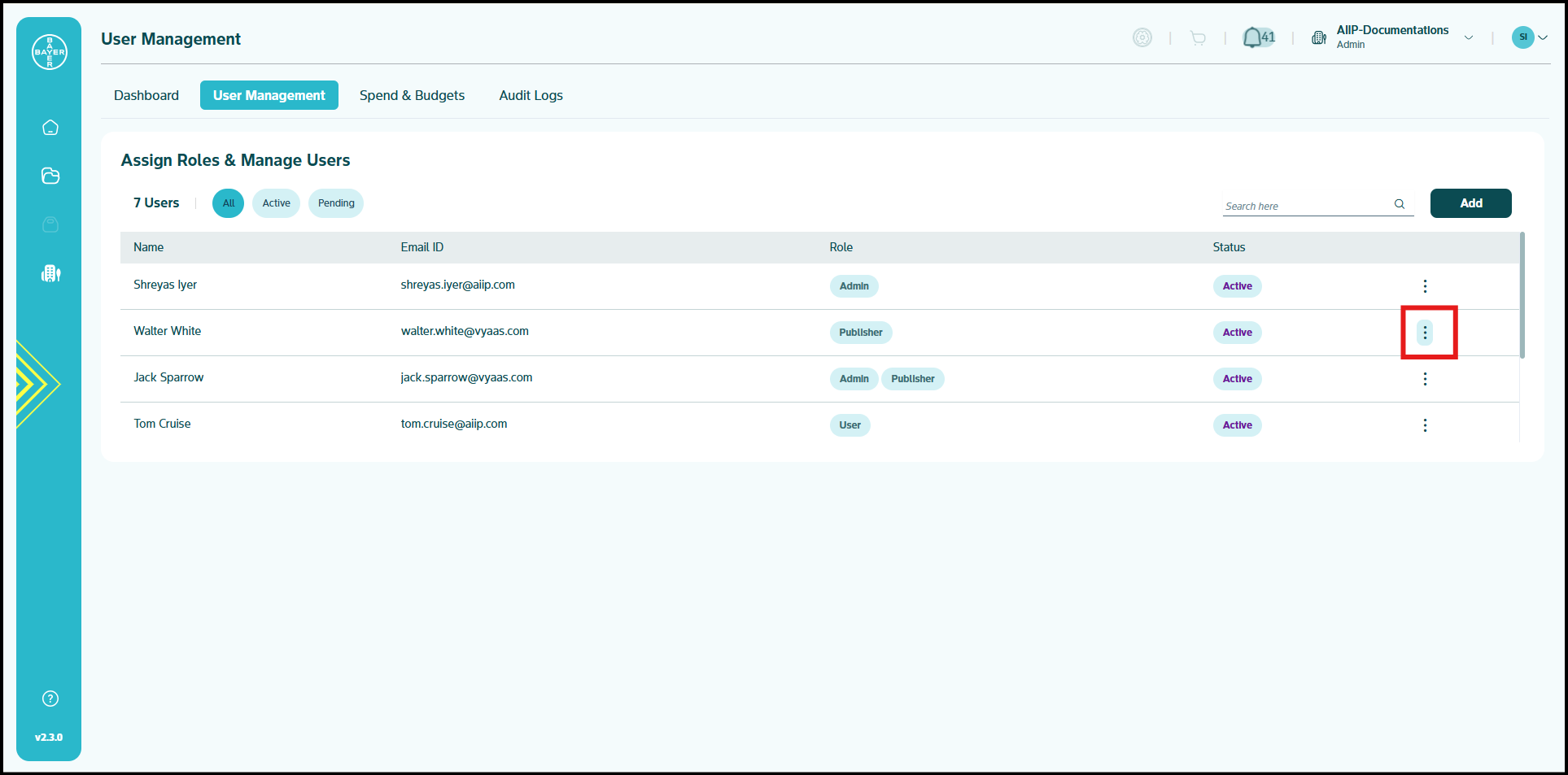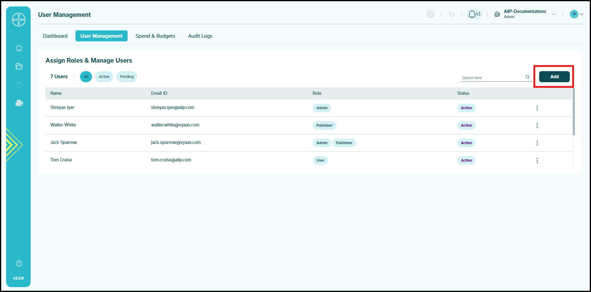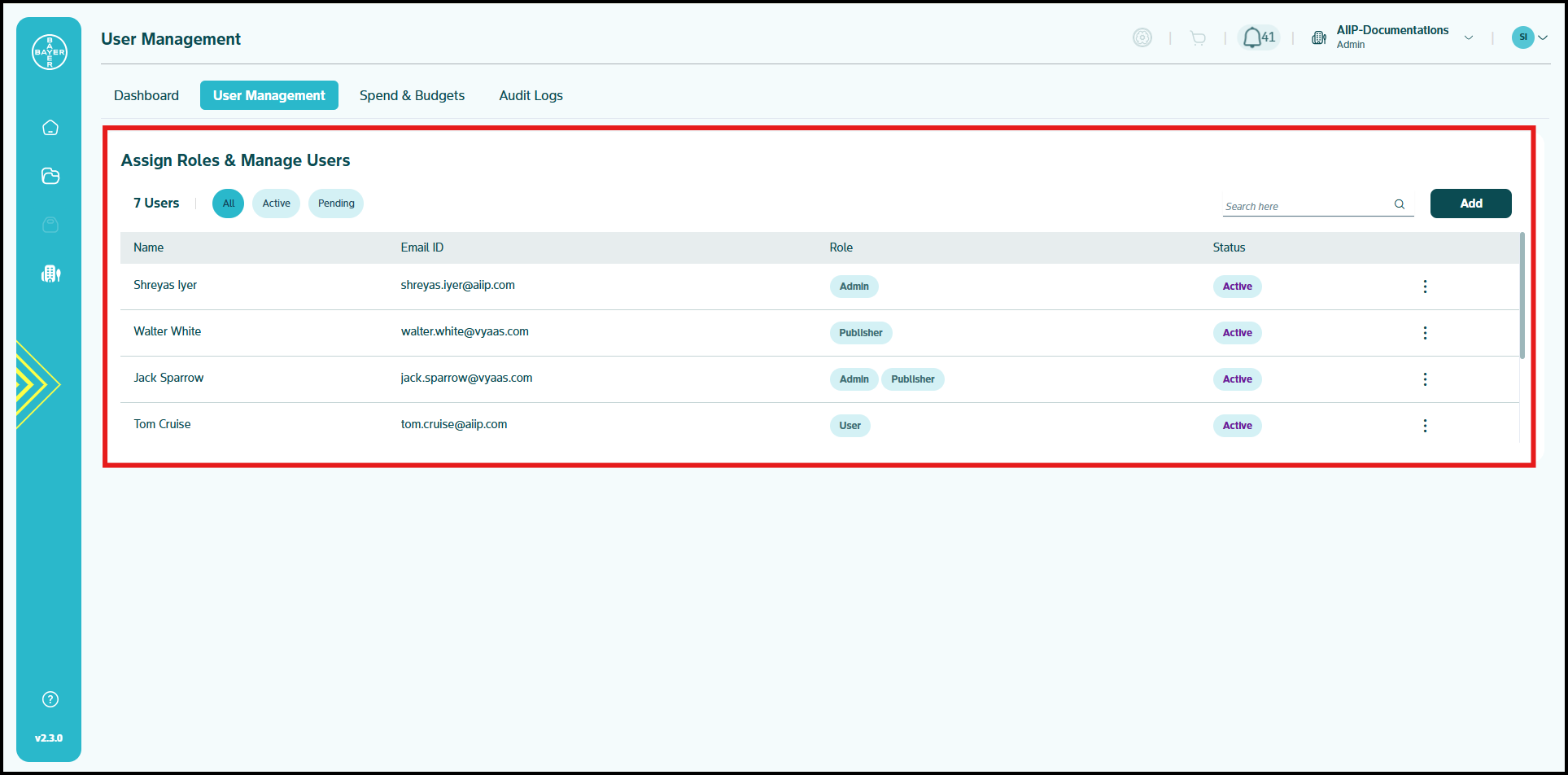 - Toggle between user status views (All/Active/Pending)